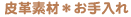 お手入れは銀つき革同様で、柔らかい布でから拭きします。必要に応じてクリームなどを使用します。 |